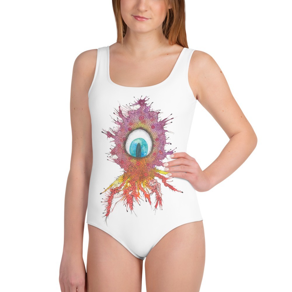 Come swim with the Spoortles in this cute one-piece swimsuit. Whether you’re swimming in the Brumptle Sea, Swamp Ebegobe, your local beach, or own back yard pool, the Spoortles are the best companions. “What are these lovely creatures?”, your envious mates will ask. Besides what want in a youth swimsuit? Comfort? Check! Soft fabric? Check! Very silly and cute? Double check!! As you can see, it has everything a girl would love in a swimsuit for those active beach or pool days!